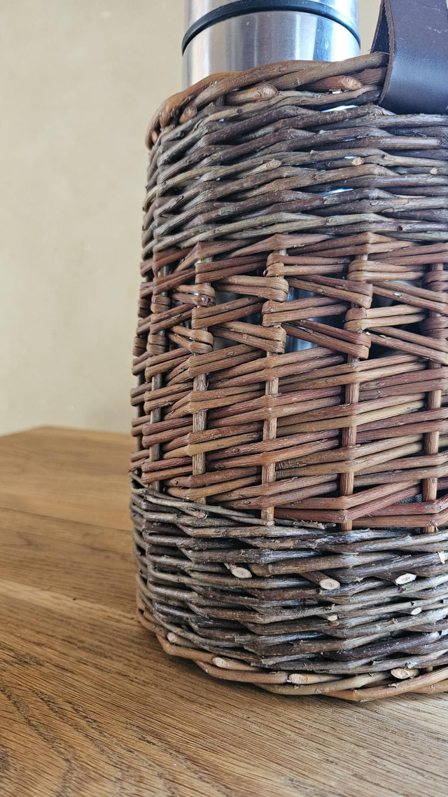 L’osier brut révèle la beauté de la matière et s’associe harmonieusement au cuir pour un style intemporel.