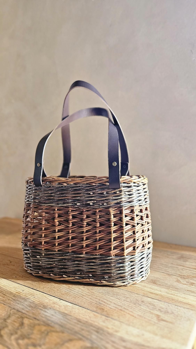 Petit cabas en osier brut, doté d’anses en cuir permettant un porté confortable à l’épaule. Léger et fonctionnel, il vous accompagne facilement au quotidien.