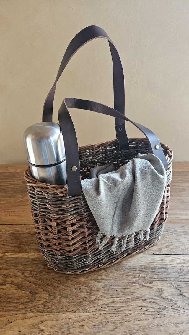 Cabas en osier anses cuir